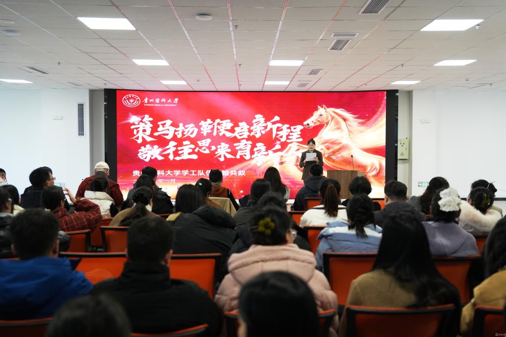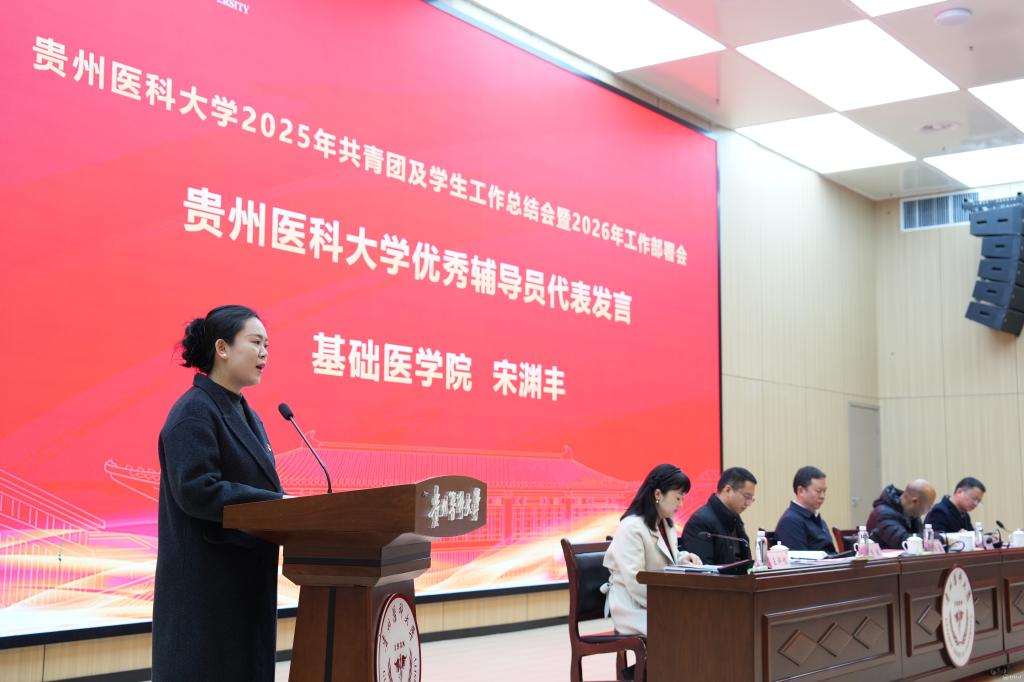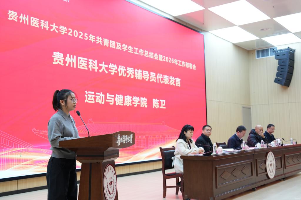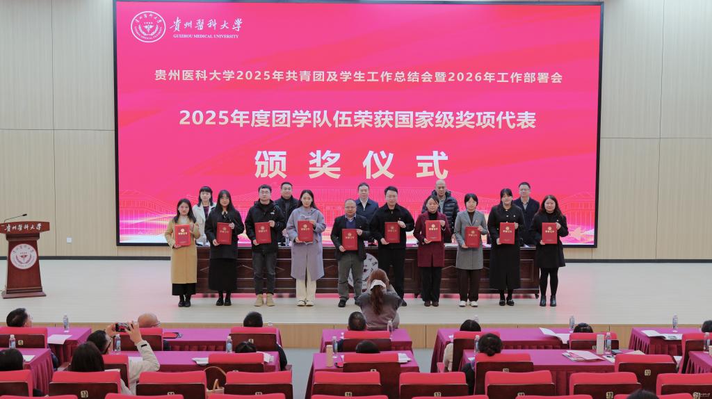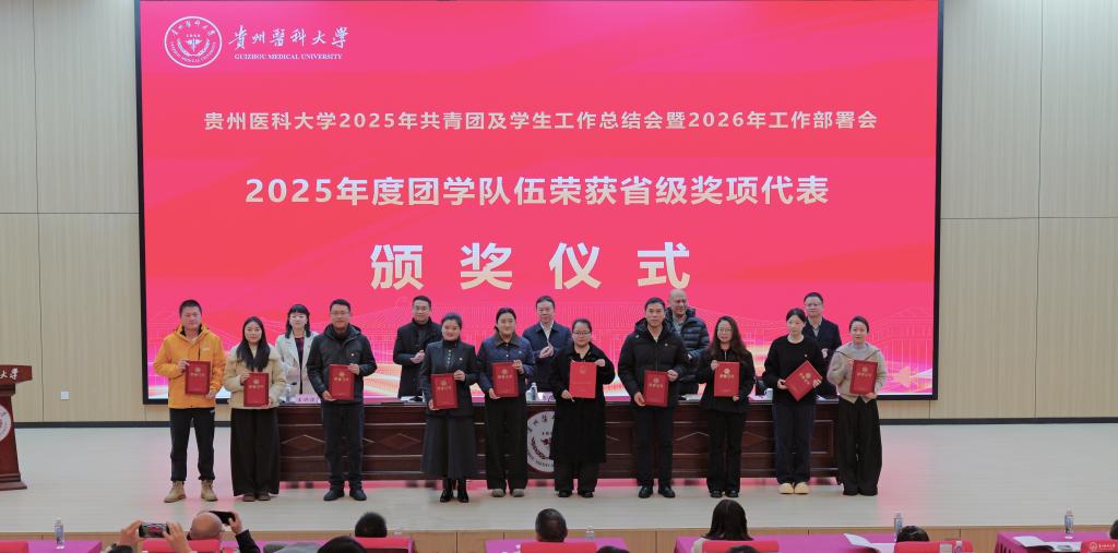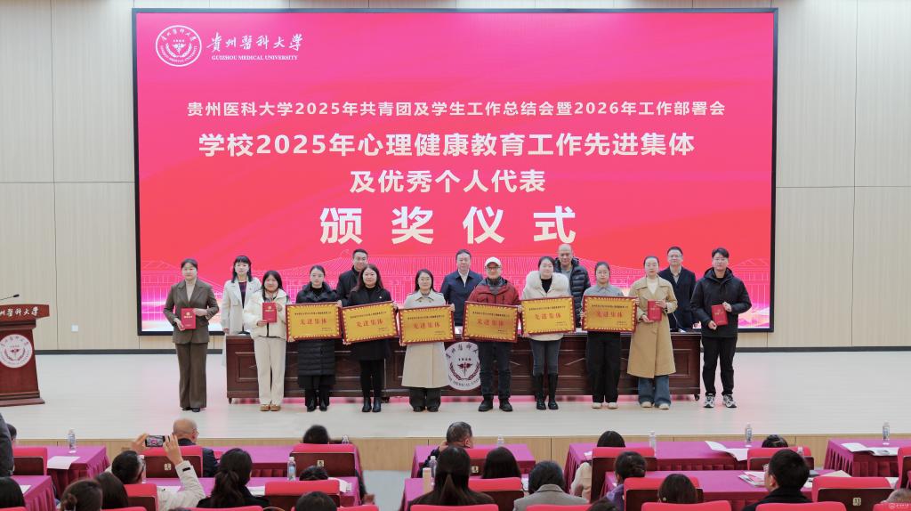 党政办公室主任杨毅宣读了《贵州医科大学2025年度辅导员考核评优结果》《贵州医科大学关于表彰2025年度征兵工作先进单位的决定》《贵州医科大学关于表彰2025年心理健康教育工作先进集体及优秀个人的决定》等表彰文件。