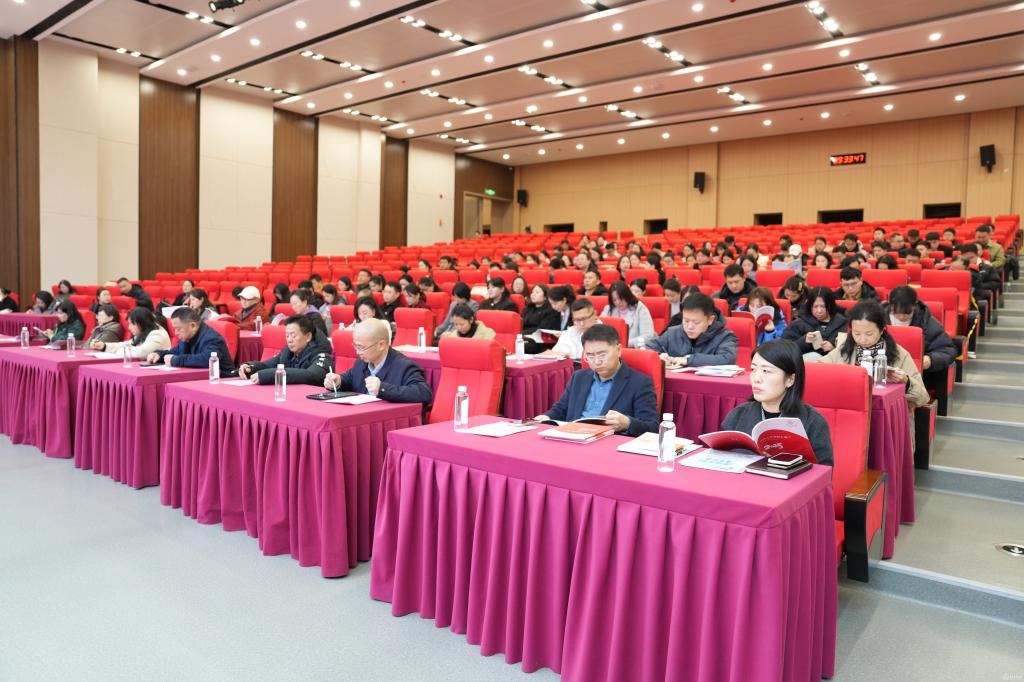 1月12日,我校2025年度共青团及学生工作总结会暨2026年工作部署会在云漫湖校区道德讲堂召开。会议全面总结回顾过去一年工作,系统部署新一年重点任务,并开展了学工队伍交流分享、“一站式”学生社区巡游参观及特色项目团建活动。校党委书记汤磊,校党委副书记于浩出席会议并讲话。党政办公室、党委学生工作部(学生处、武装部)、党委研究生工作部、校团委、招生就业处、大学生心理健康教育与咨询中心等部门负责人及工作人员,各学院党委书记、分管学生工作副书记、学生科科长、院团委负责人及全体辅导员参加。
